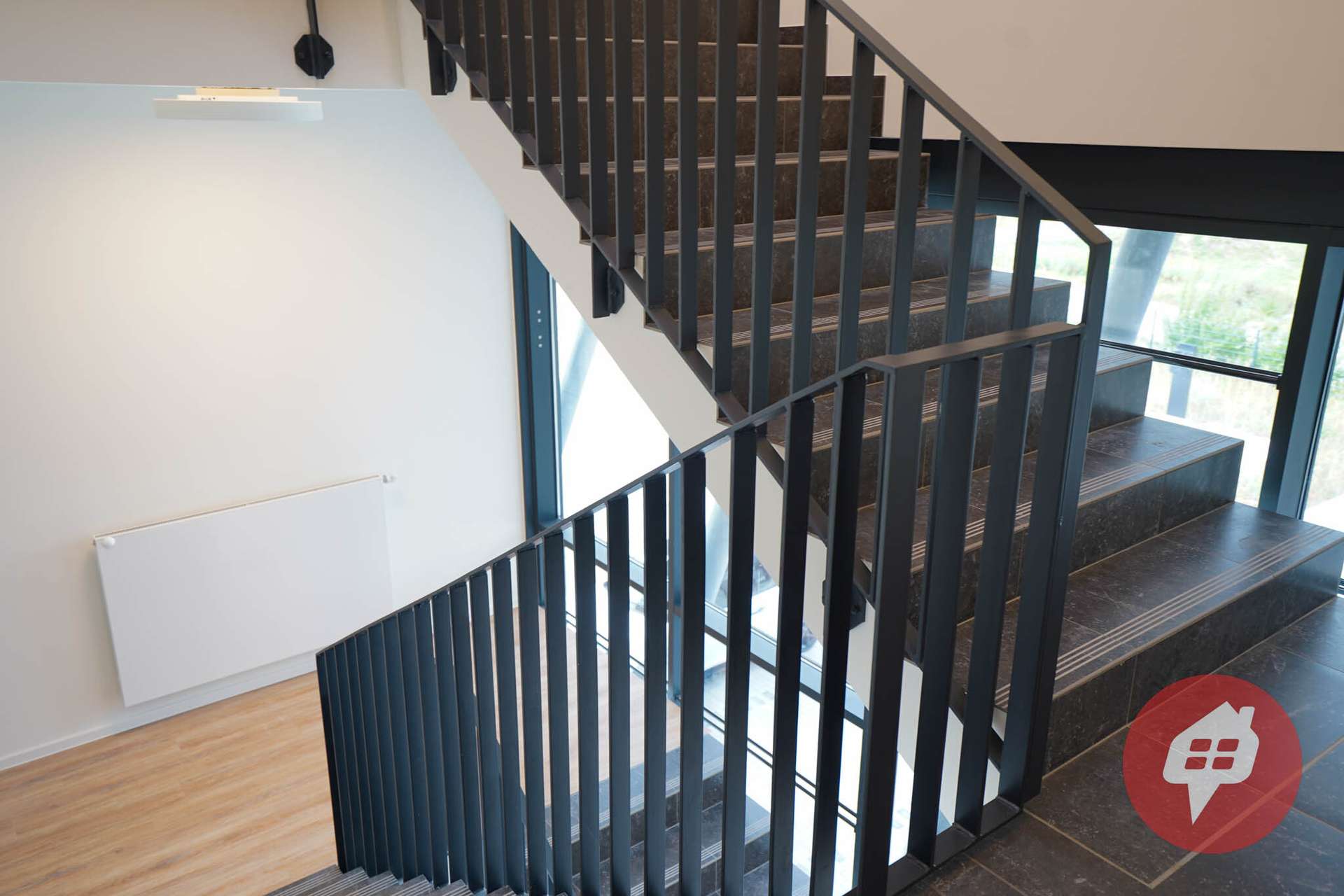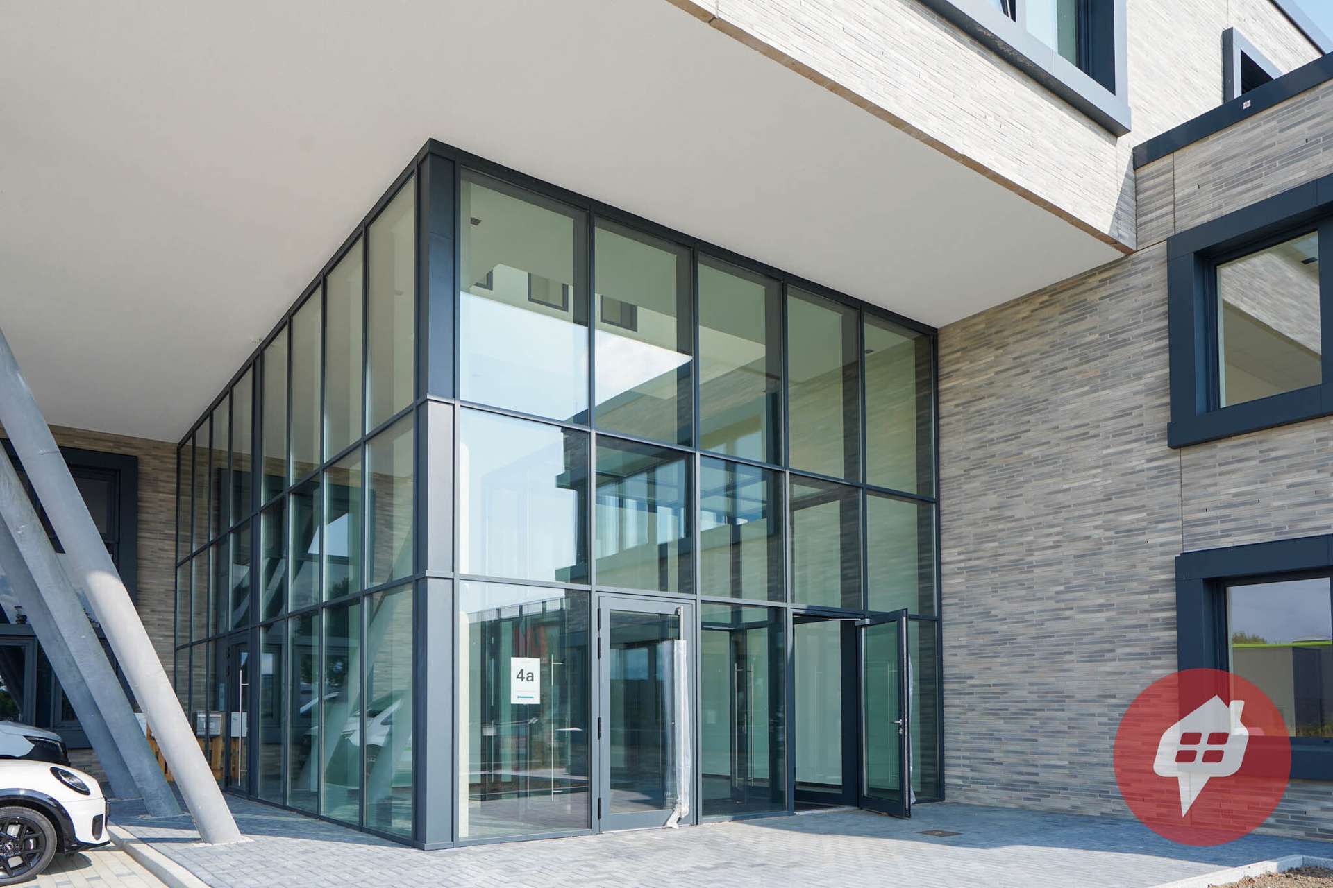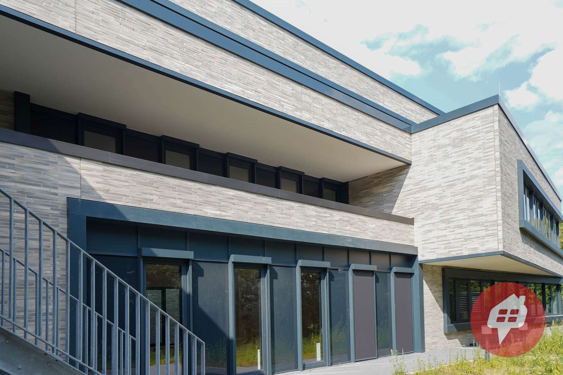 Mit seiner markanten Ziegelsteinfassade, eleganten Fensterbändern und harmonischen Kontrasten ist das Gebäude ein architektonischer Blickfang.