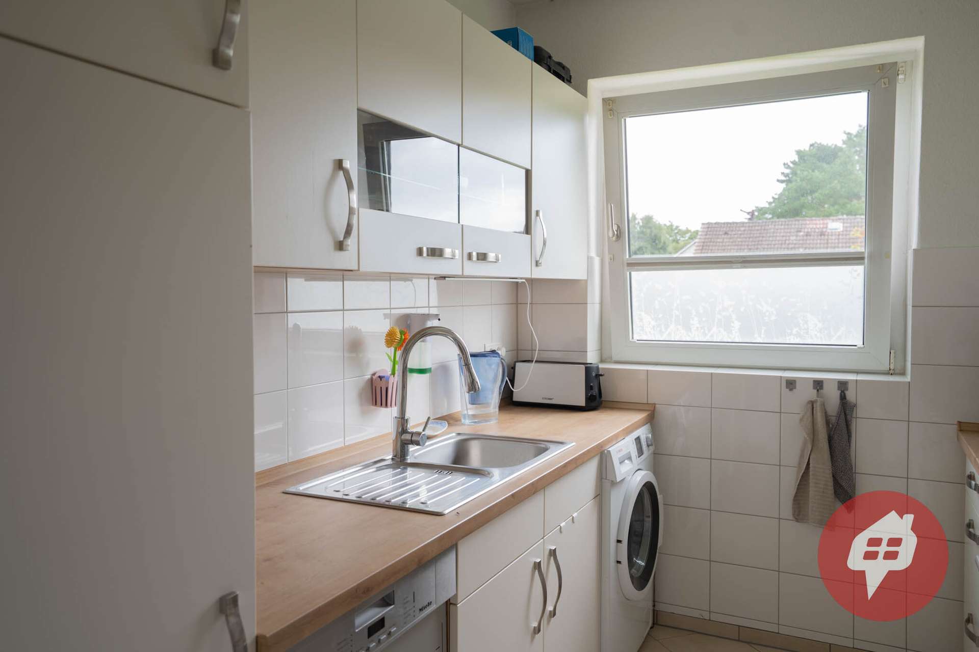 Die Wohnung ist mit einem pflegeleichten Vinylboden in allen Wohn- und Schlafräumen ausgestattet, während Flur, Küche und Bad gefliest sind. Vom Wohnzimmer aus gelangen Sie auf die geflieste, nach Westen ausgerichtete Loggia. Das Badezimmer verfügt über eine Wanne sowie ein Fenster. In der Einbauküche sind ein Geschirrspüler und eine Waschmaschine integriert. Die Warmwasserversorgung erfolgt über Durchlauferhitzer. Die Fenster im Wohnzimmer und im Bad wurden im Jahr 2013 erneuert.