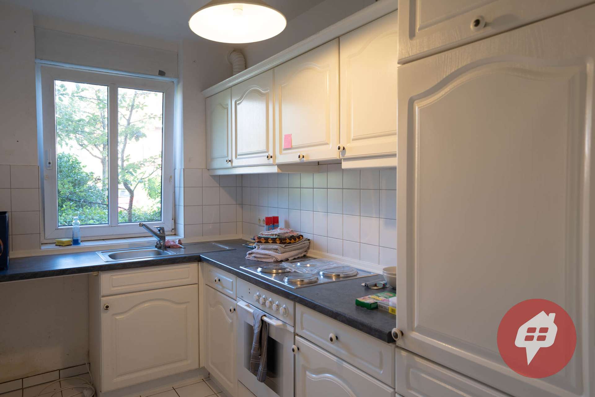 Die Wohnung ist mit einer Einbauküche ausgestattet, die – ebenso wie die Teppichböden – dem Baujahr entspricht.