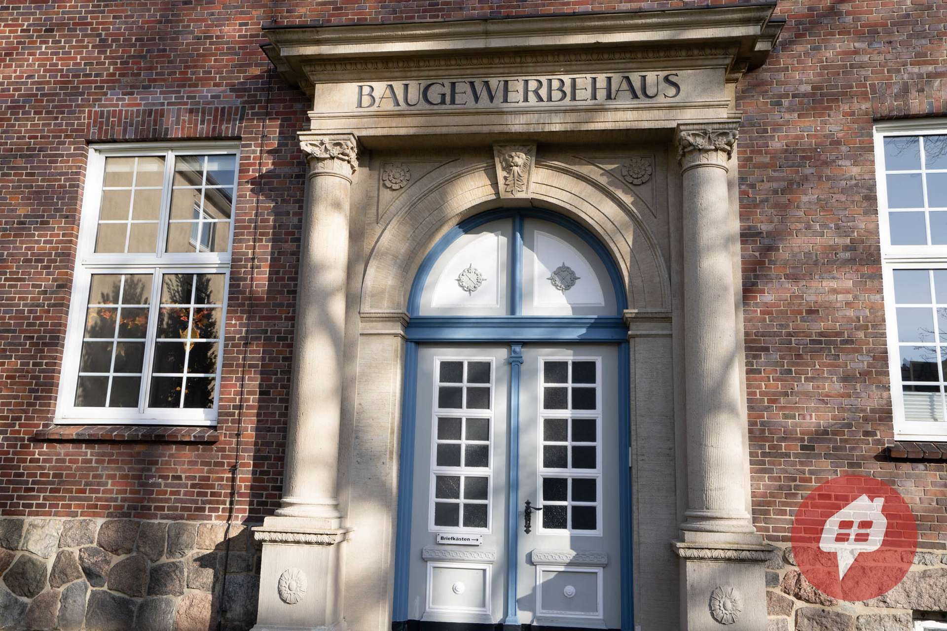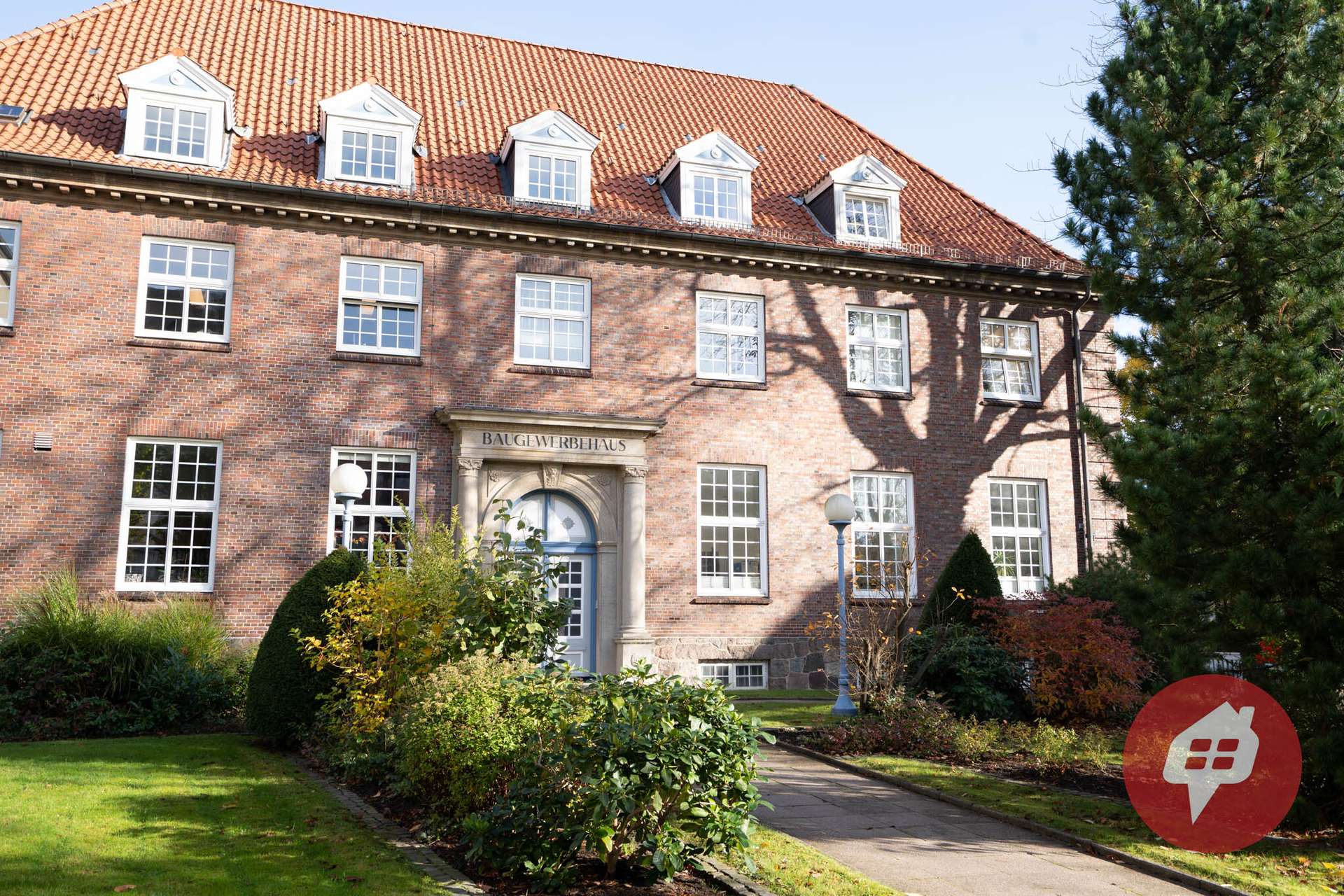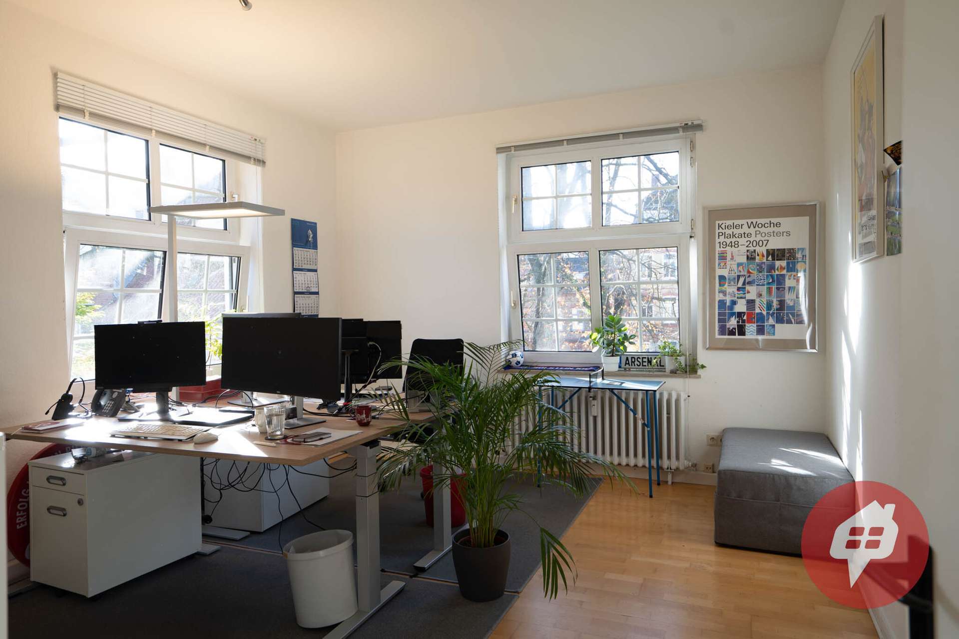 Diese Büroräume befinden sich im 1..Obergeschoß des alten Baugewerbehauses - einem denkmalgeschützten Gebäude das 1922 errichtet wurde und sich auf einem kleinen Gartengelände etwas abseits der Ringstraße befindet. Am Rande der Kieler Innenstadt, nahe dem Bahnhof und dem Einkaufszentrum Sophienhof.